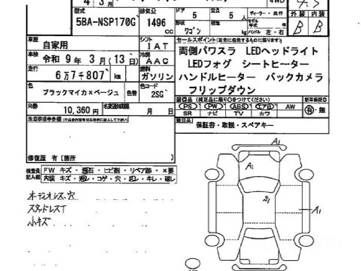 Номер кузова: NSP170G.