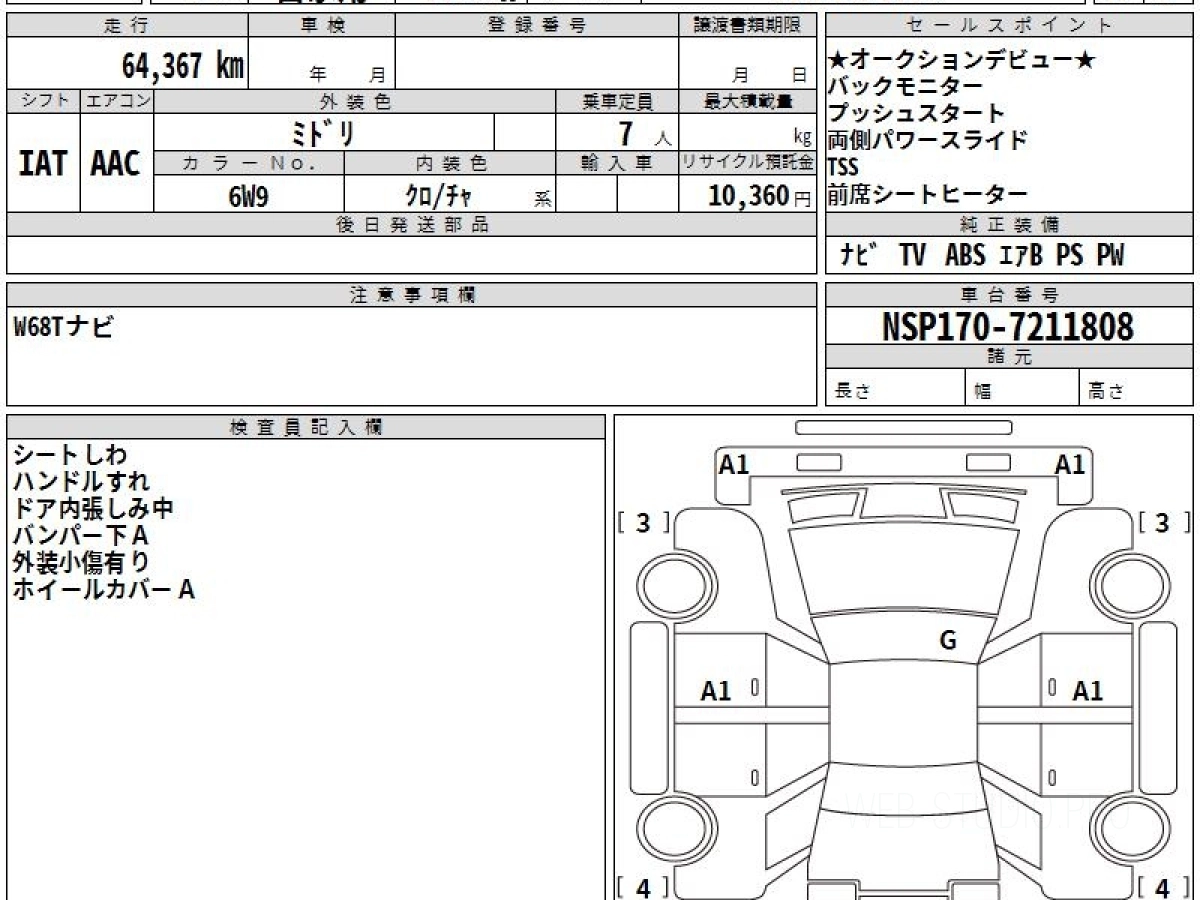 Номер кузова: NSP170G.