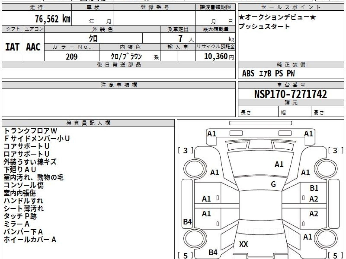 Номер кузова: NSP170G.