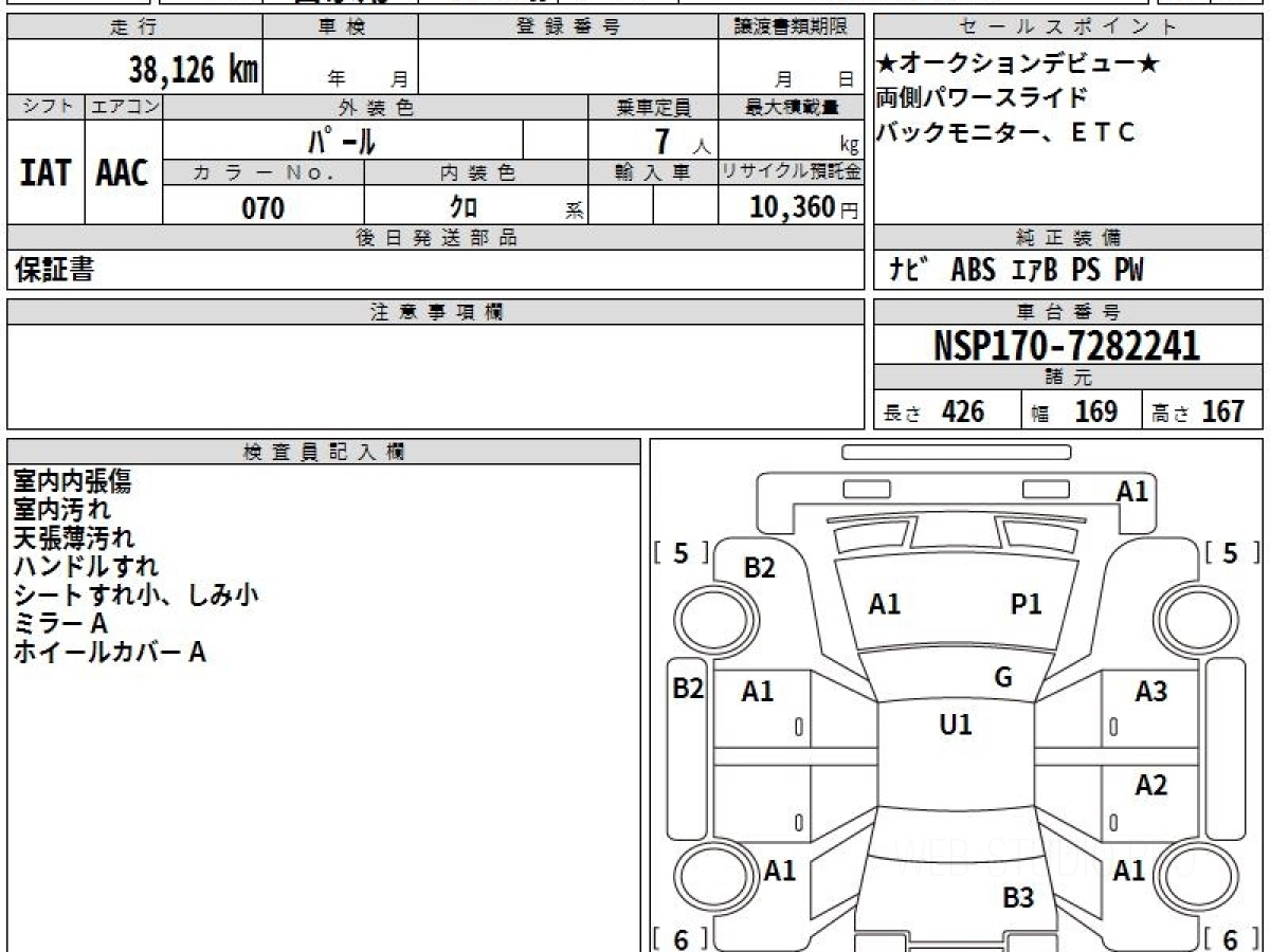 Номер кузова: NSP170G.