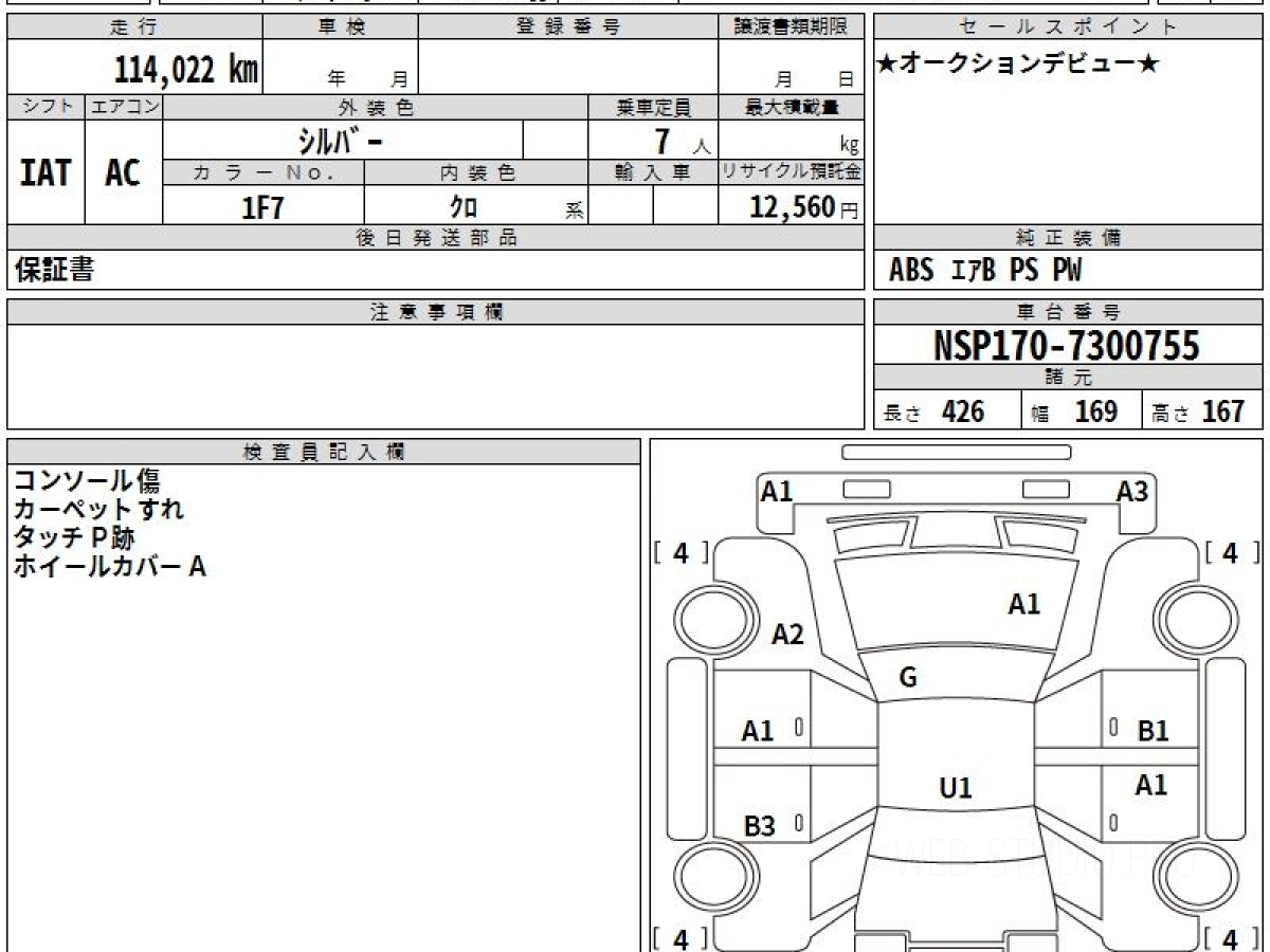 Номер кузова: NSP170G.
