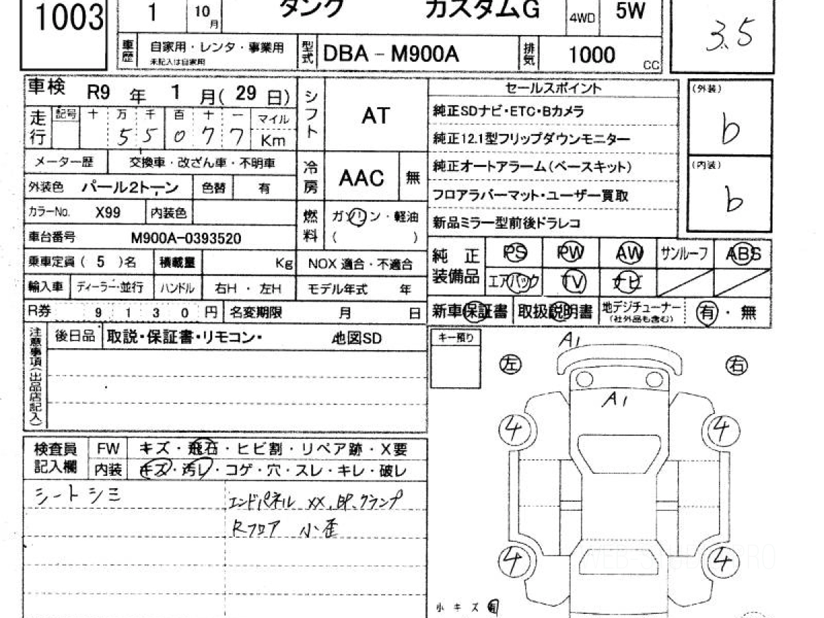 Оценка аукциона: 3.5, что гарантирует хорошее техническое и косметическое состояние кузова и салона.