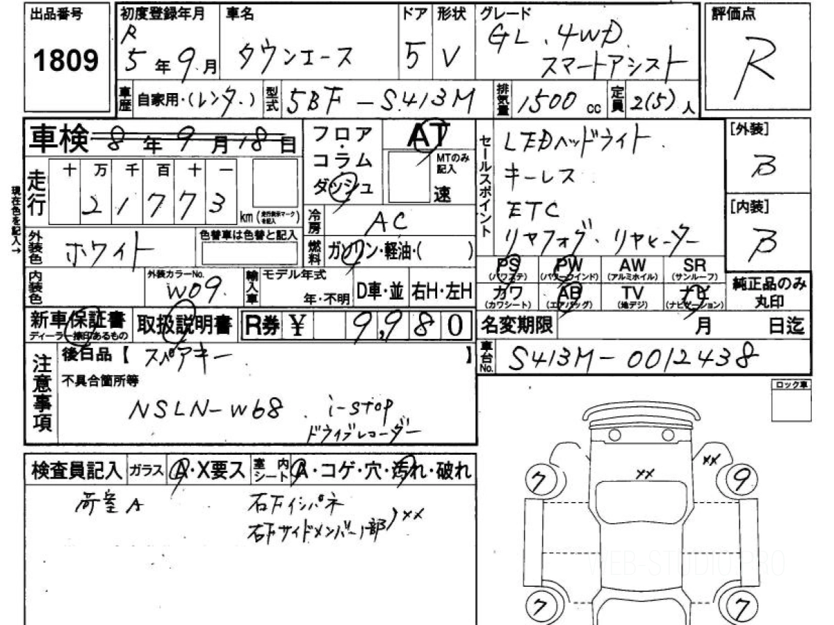 Оценка аукциона: R, что гарантирует хорошее техническое и косметическое состояние кузова и салона.