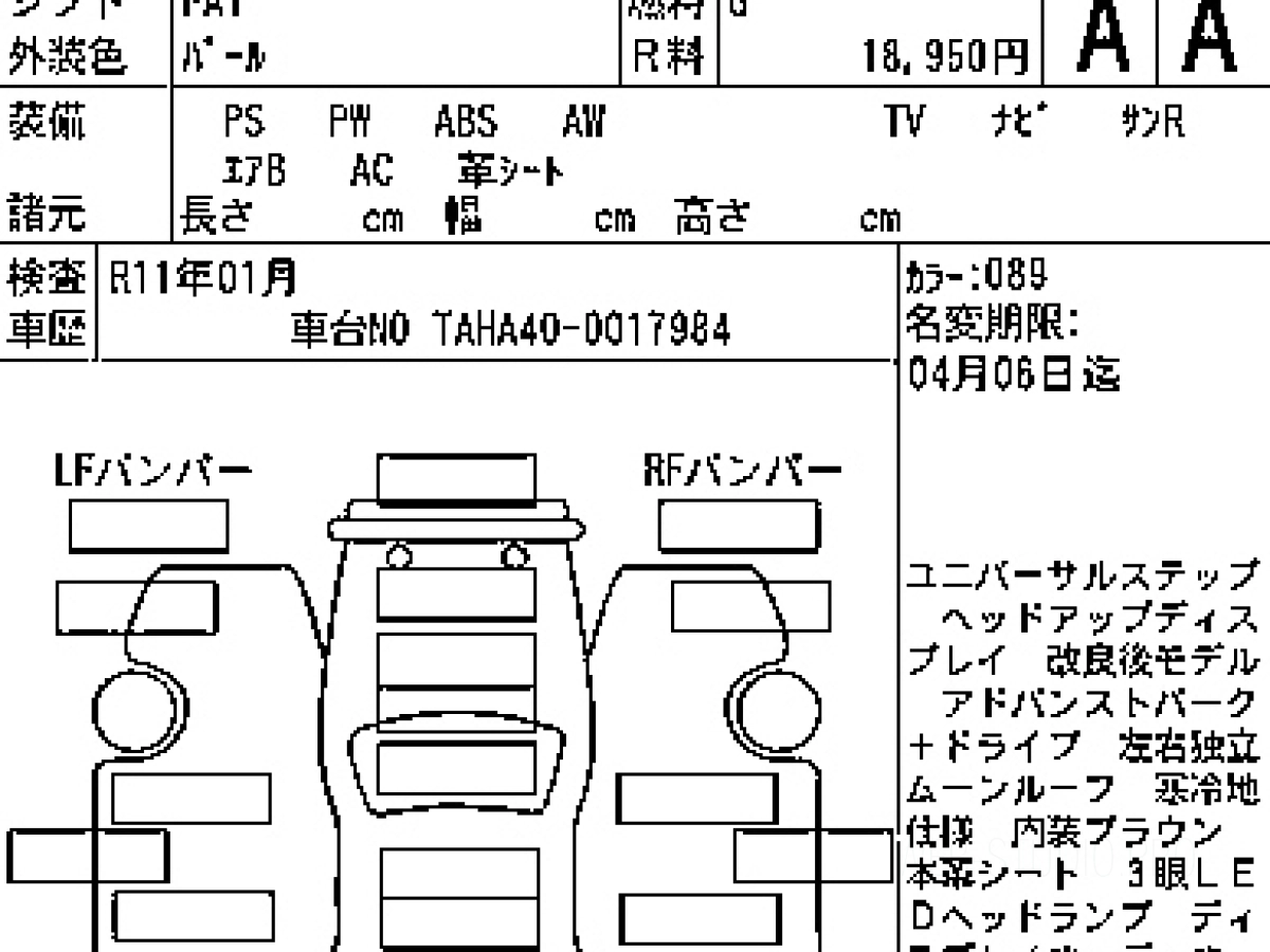 Номер кузова: TAHA40W.