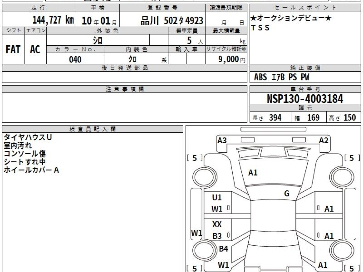 Номер кузова: NSP130.