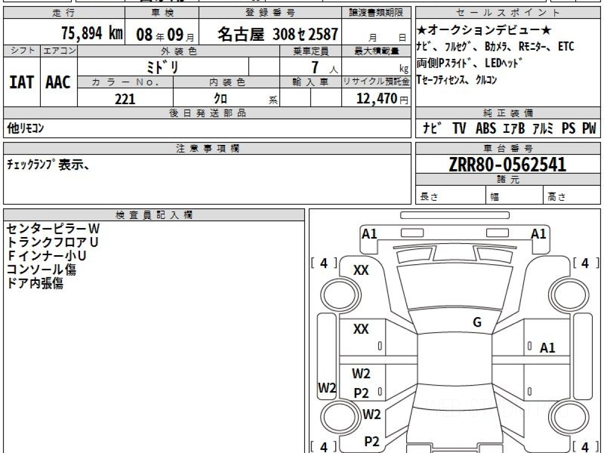 Номер кузова: ZRR80W.