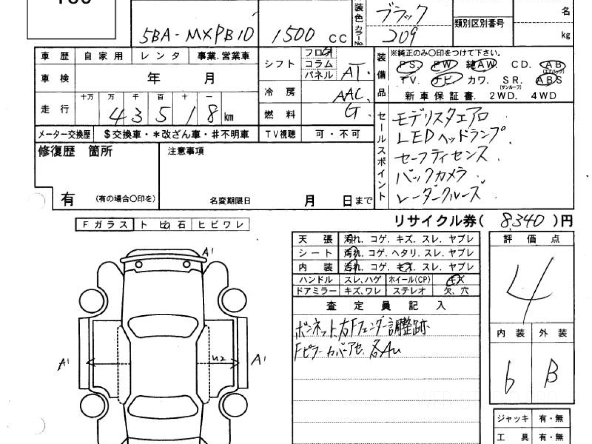 Оценка аукциона: 4, что гарантирует хорошее техническое и косметическое состояние кузова и салона.