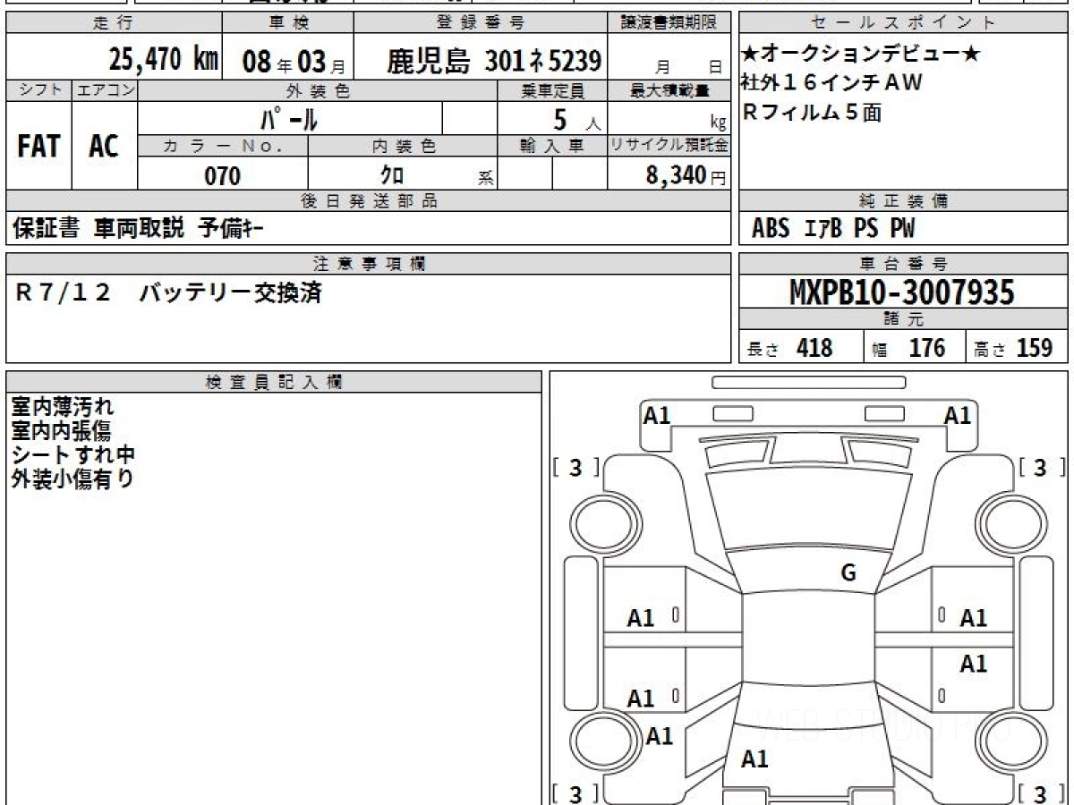 Оценка аукциона: 4, что гарантирует хорошее техническое и косметическое состояние кузова и салона.