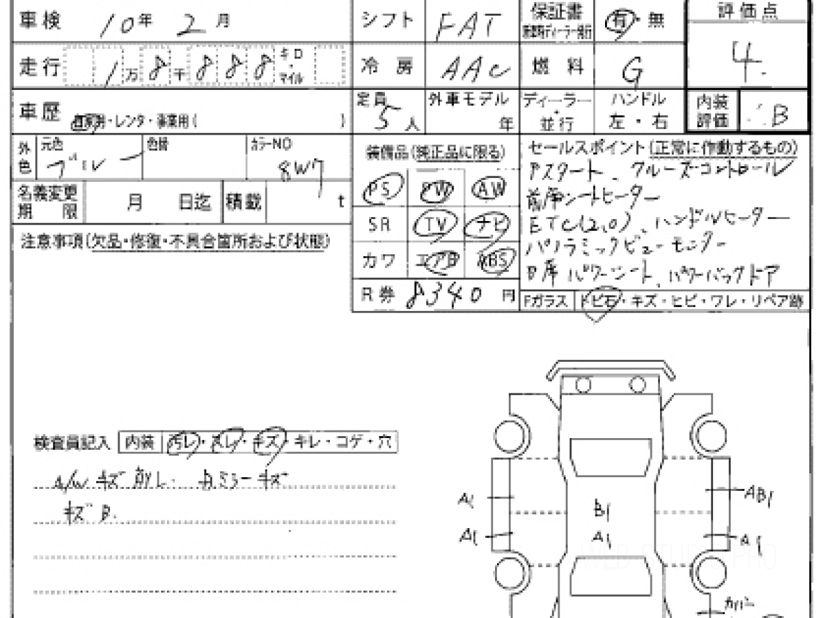 Оценка аукциона: 4, что гарантирует хорошее техническое и косметическое состояние кузова и салона.