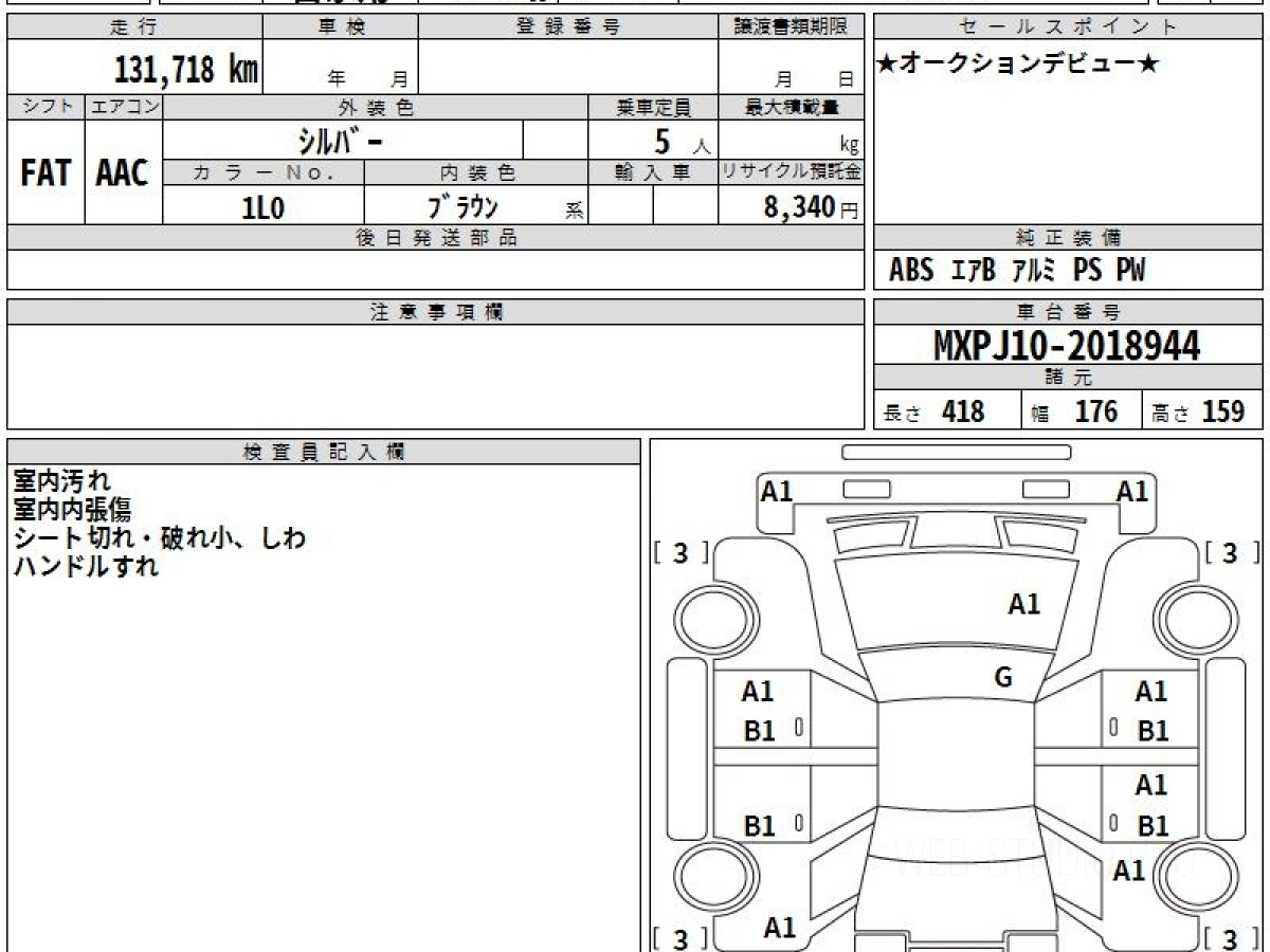 Оценка аукциона: 4, что гарантирует хорошее техническое и косметическое состояние кузова и салона.