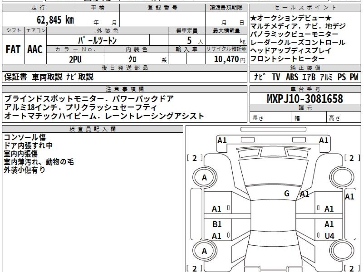 Оценка аукциона: 3.5, что гарантирует хорошее техническое и косметическое состояние кузова и салона.