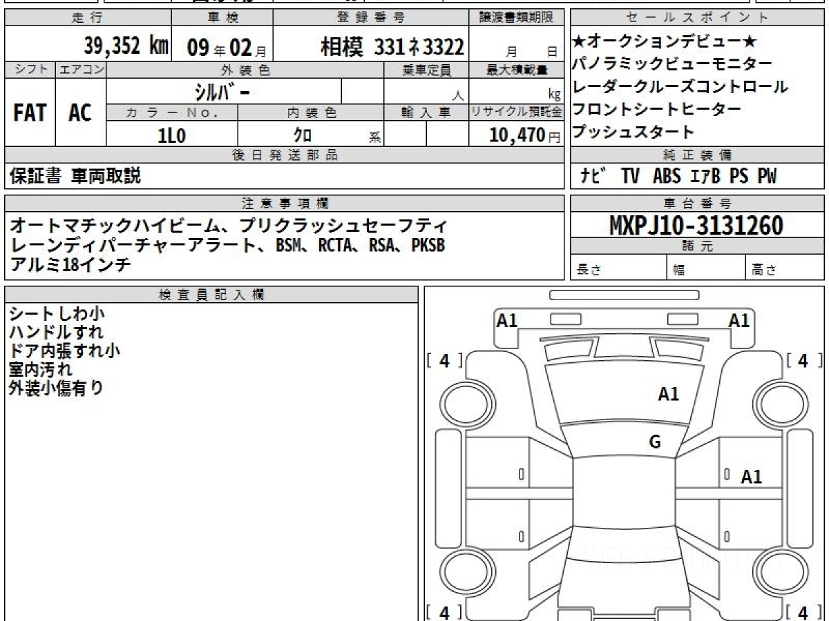 Оценка аукциона: 4.5, что гарантирует хорошее техническое и косметическое состояние кузова и салона.