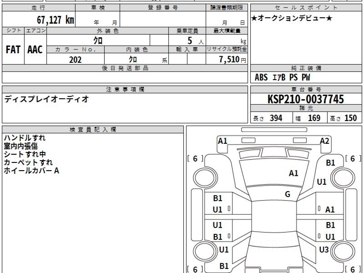Оценка аукциона: 4, что гарантирует хорошее техническое и косметическое состояние кузова и салона.