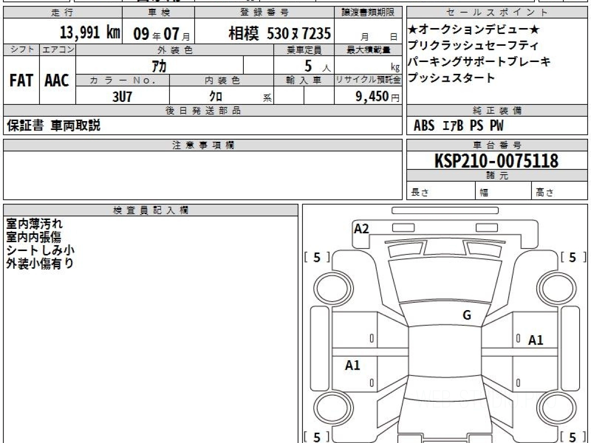 Оценка аукциона: 5, что гарантирует хорошее техническое и косметическое состояние кузова и салона.
