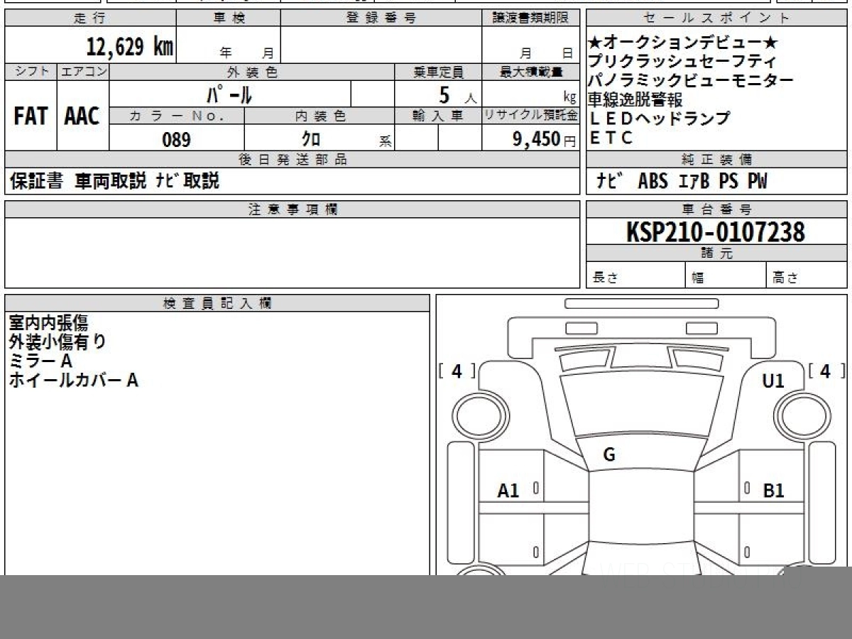 Оценка аукциона: 5, что гарантирует хорошее техническое и косметическое состояние кузова и салона.