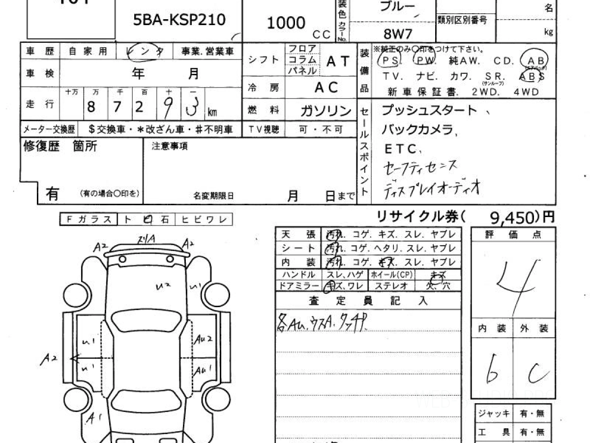 Оценка аукциона: 4, что гарантирует хорошее техническое и косметическое состояние кузова и салона.