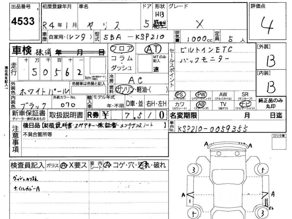 Оценка аукциона: 4, что гарантирует хорошее техническое и косметическое состояние кузова и салона.