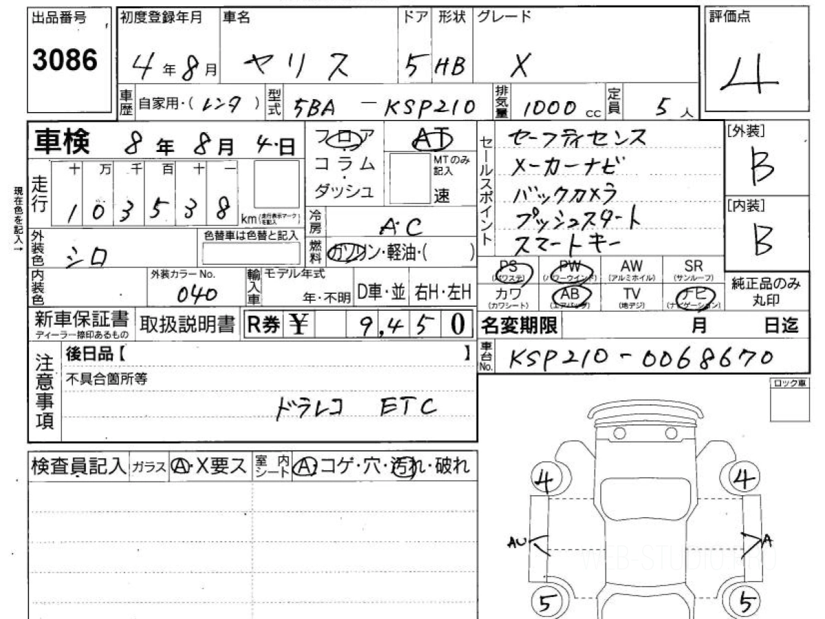 Оценка аукциона: 4, что гарантирует хорошее техническое и косметическое состояние кузова и салона.