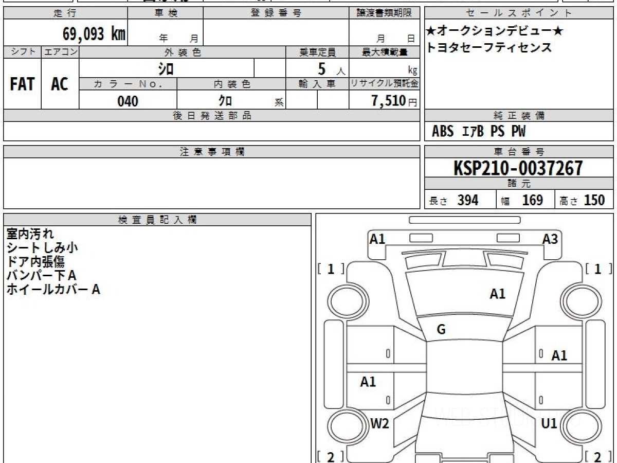 Номер кузова: KSP210.