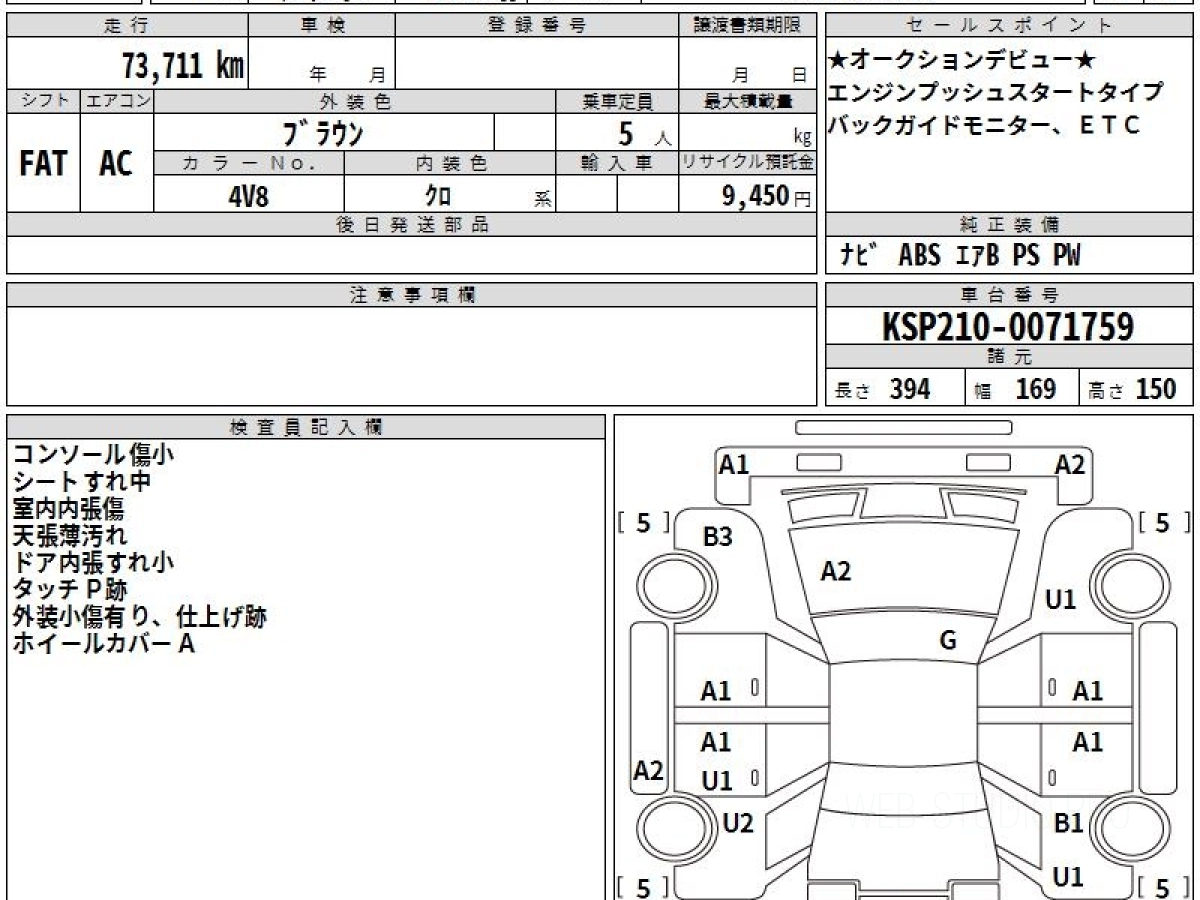 Оценка аукциона: 3.5, что гарантирует хорошее техническое и косметическое состояние кузова и салона.