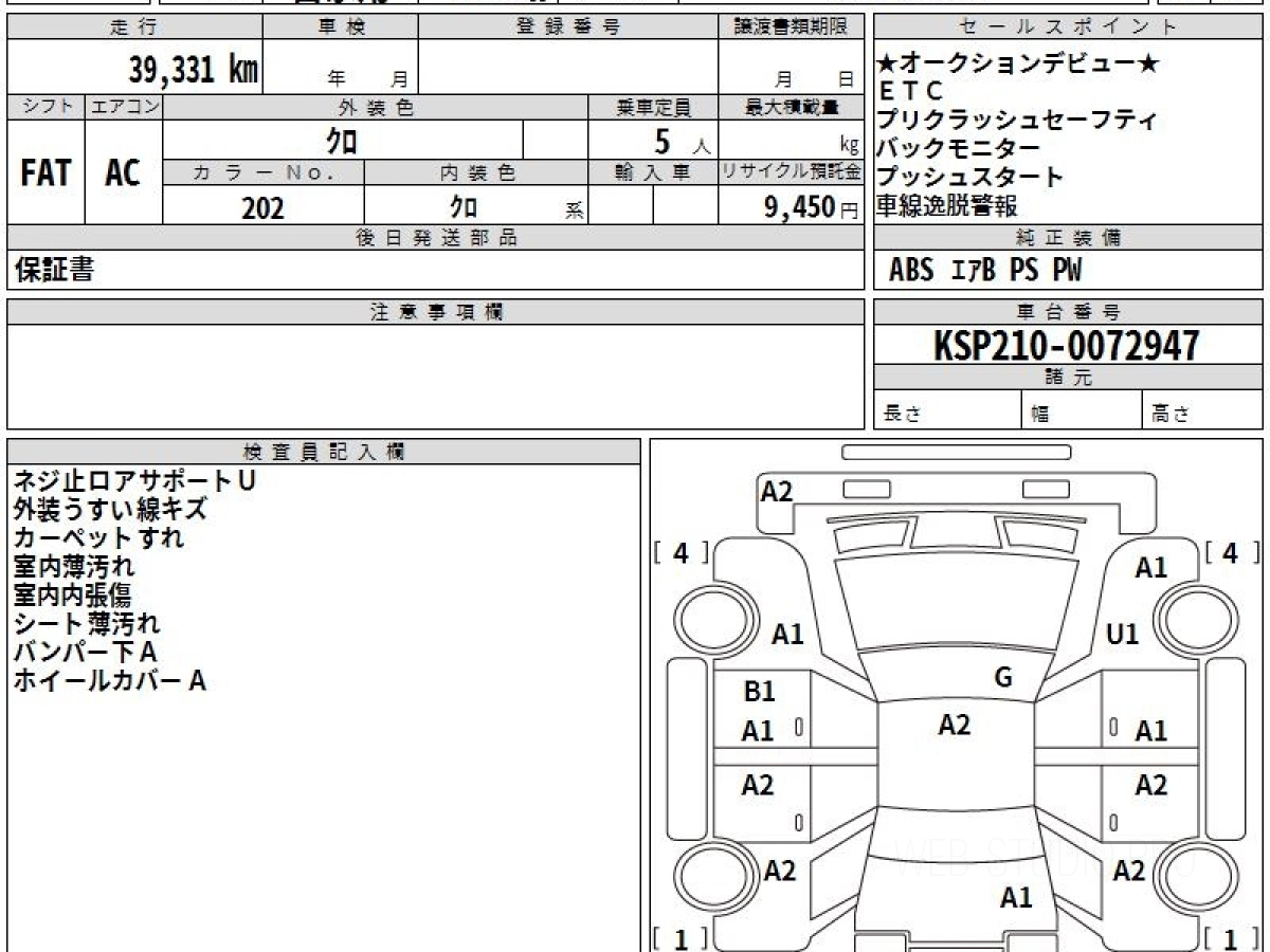 Оценка аукциона: 4, что гарантирует хорошее техническое и косметическое состояние кузова и салона.