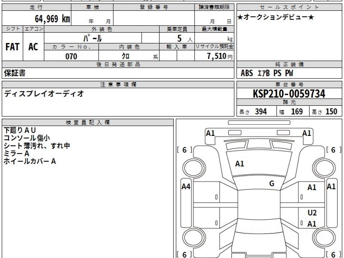 Оценка аукциона: 4, что гарантирует хорошее техническое и косметическое состояние кузова и салона.
