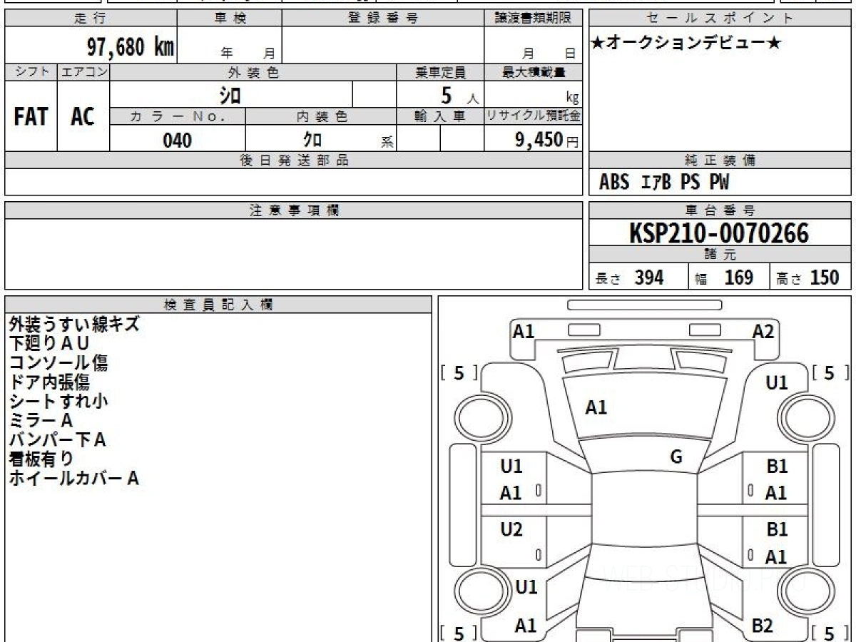 Оценка аукциона: 4, что гарантирует хорошее техническое и косметическое состояние кузова и салона.