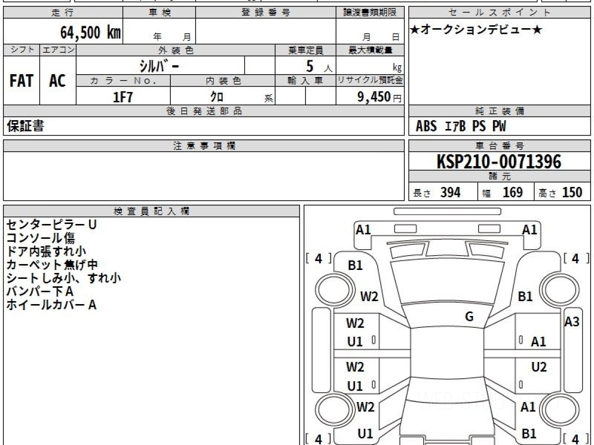 Оценка аукциона: RA, что гарантирует хорошее техническое и косметическое состояние кузова и салона.
