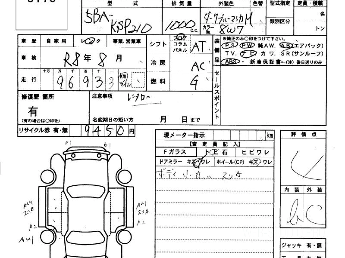 Оценка аукциона: 4, что гарантирует хорошее техническое и косметическое состояние кузова и салона.