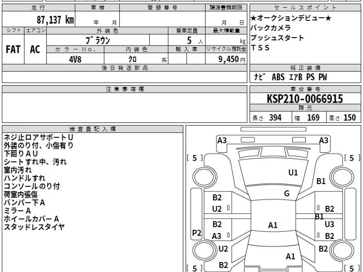 Оценка аукциона: 3, что гарантирует хорошее техническое и косметическое состояние кузова и салона.