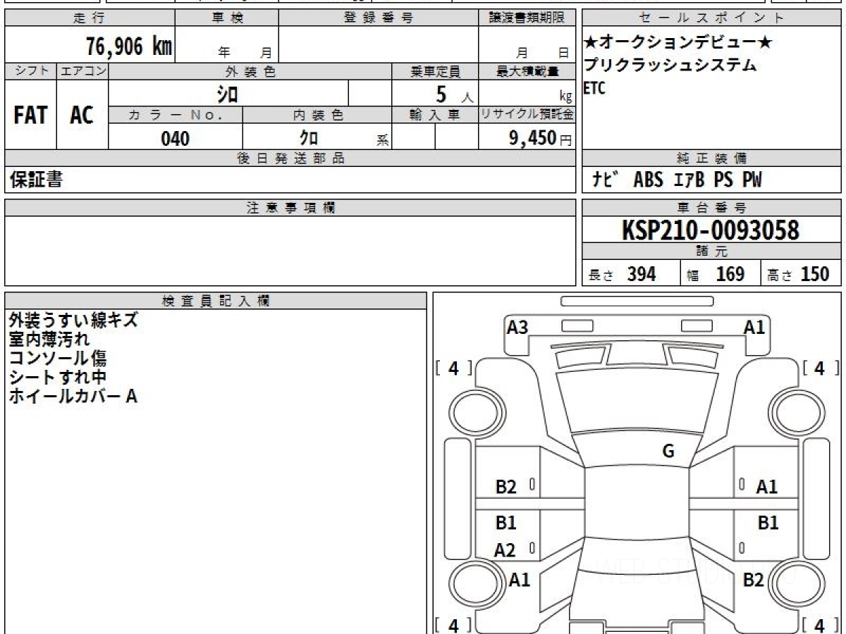 Оценка аукциона: 4, что гарантирует хорошее техническое и косметическое состояние кузова и салона.