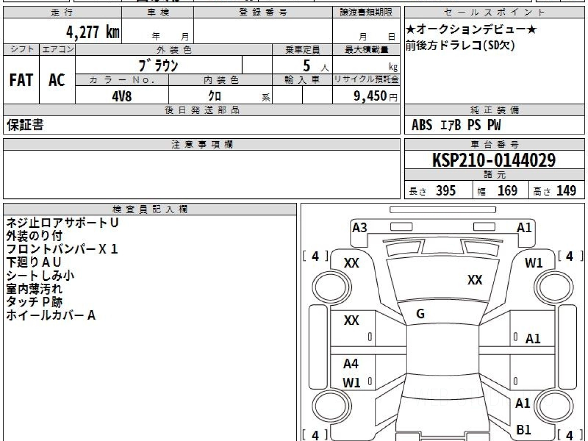 Оценка аукциона: 4, что гарантирует хорошее техническое и косметическое состояние кузова и салона.