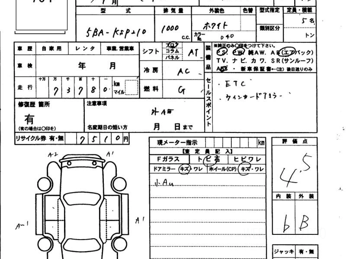Оценка аукциона: 4.5, что гарантирует хорошее техническое и косметическое состояние кузова и салона.