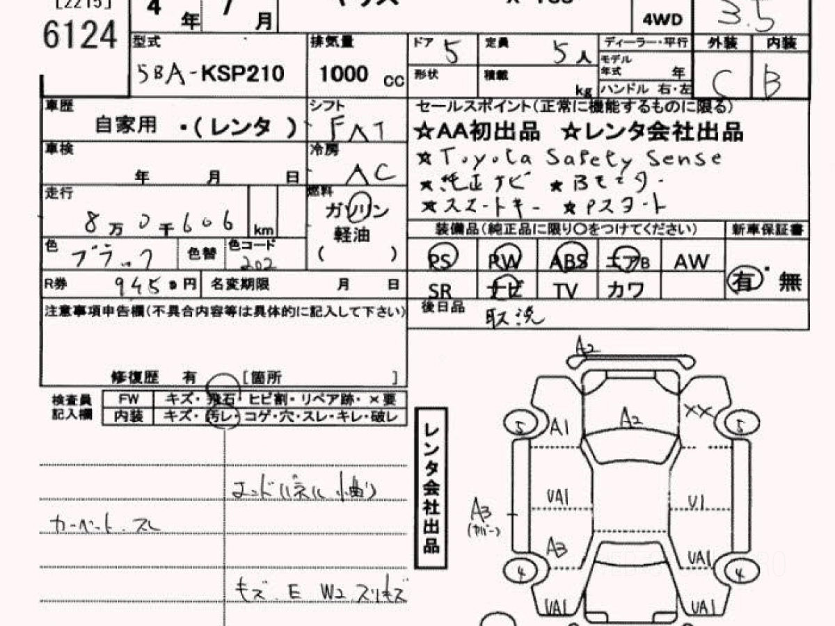 Оценка аукциона: 3.5, что гарантирует хорошее техническое и косметическое состояние кузова и салона.