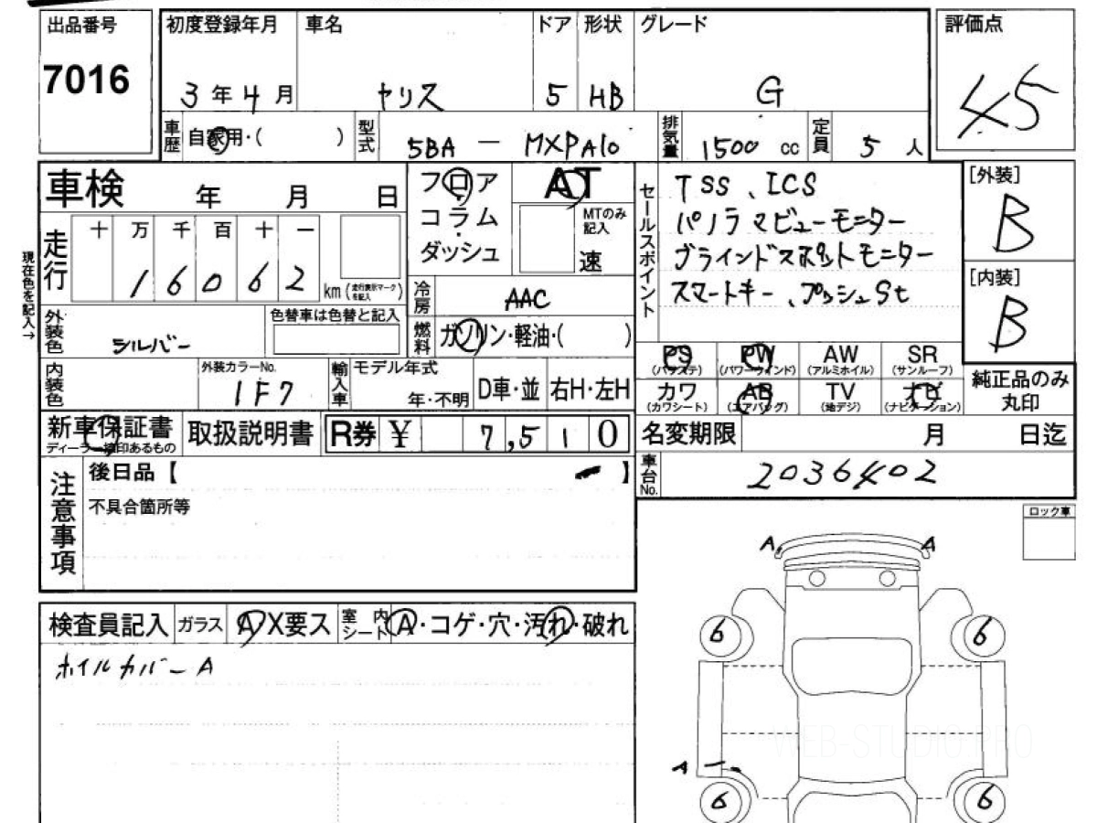 Оценка аукциона: 4.5, что гарантирует хорошее техническое и косметическое состояние кузова и салона.