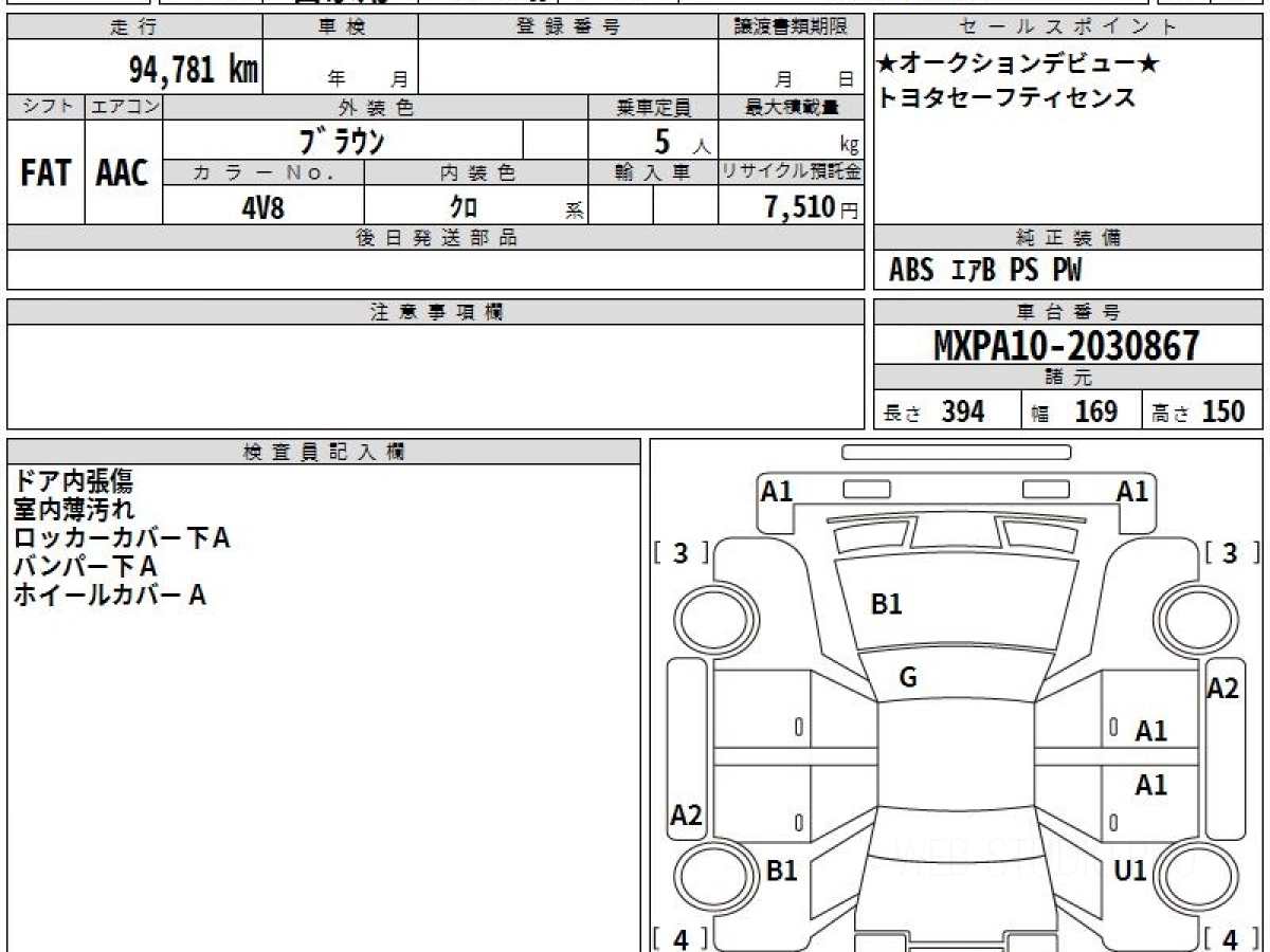 Оценка аукциона: 4, что гарантирует хорошее техническое и косметическое состояние кузова и салона.