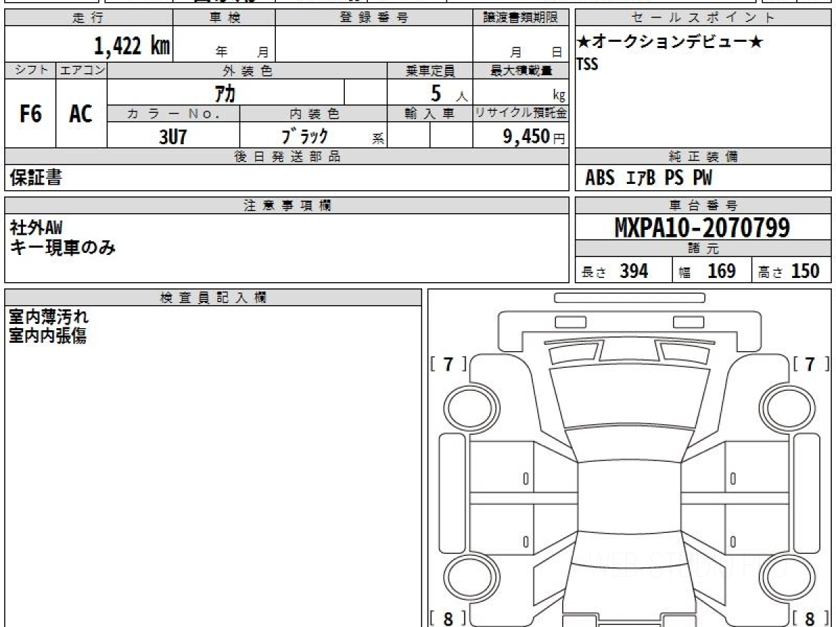 Оценка аукциона: 5, что гарантирует хорошее техническое и косметическое состояние кузова и салона.
