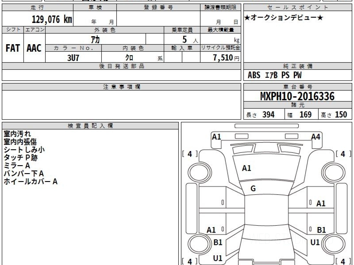 Оценка аукциона: 4, что гарантирует хорошее техническое и косметическое состояние кузова и салона.