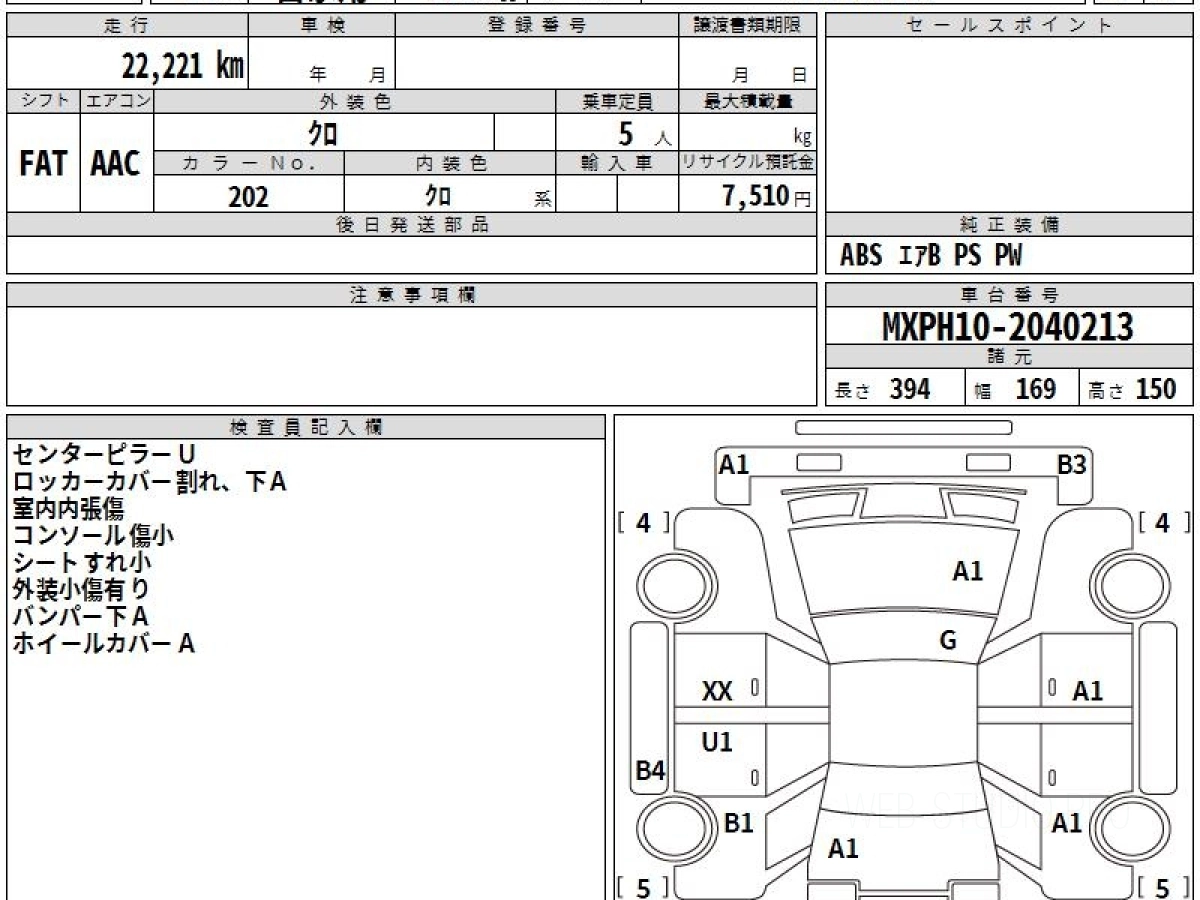 Номер кузова: MXPH10.