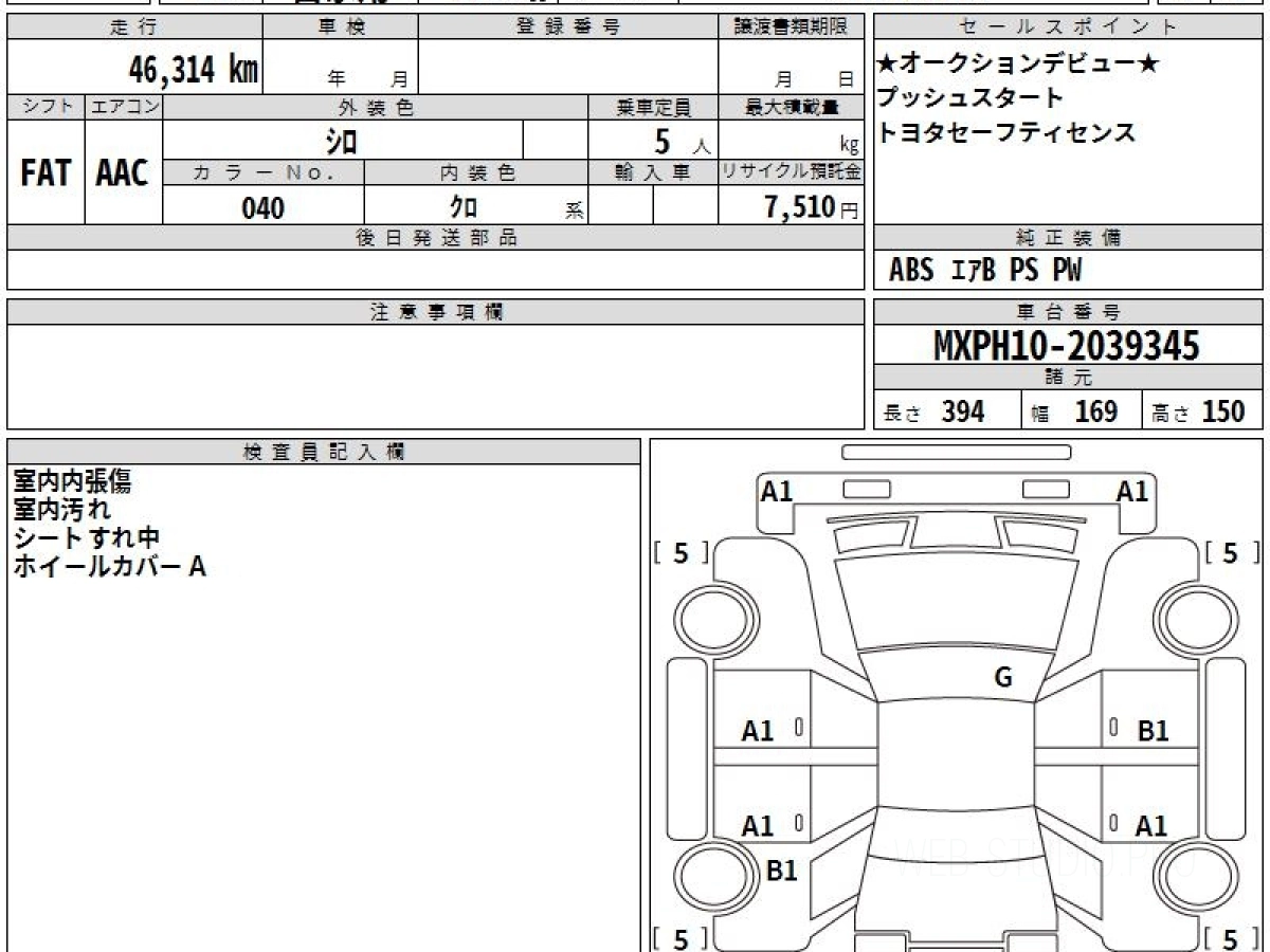 Номер кузова: MXPH10.