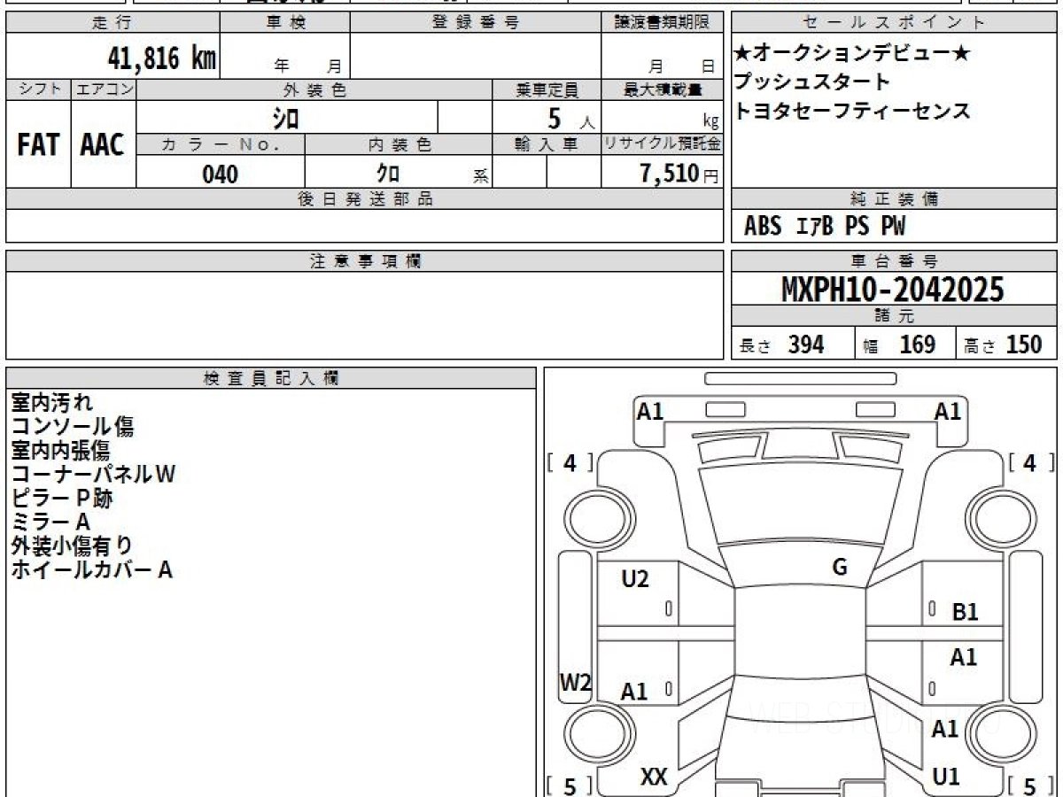 Номер кузова: MXPH10.
