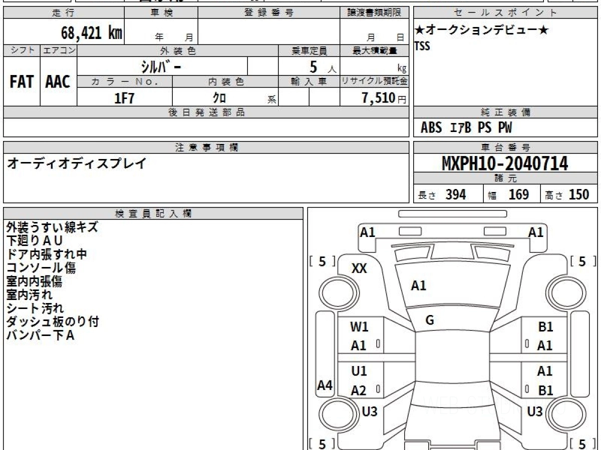 Номер кузова: MXPH10.