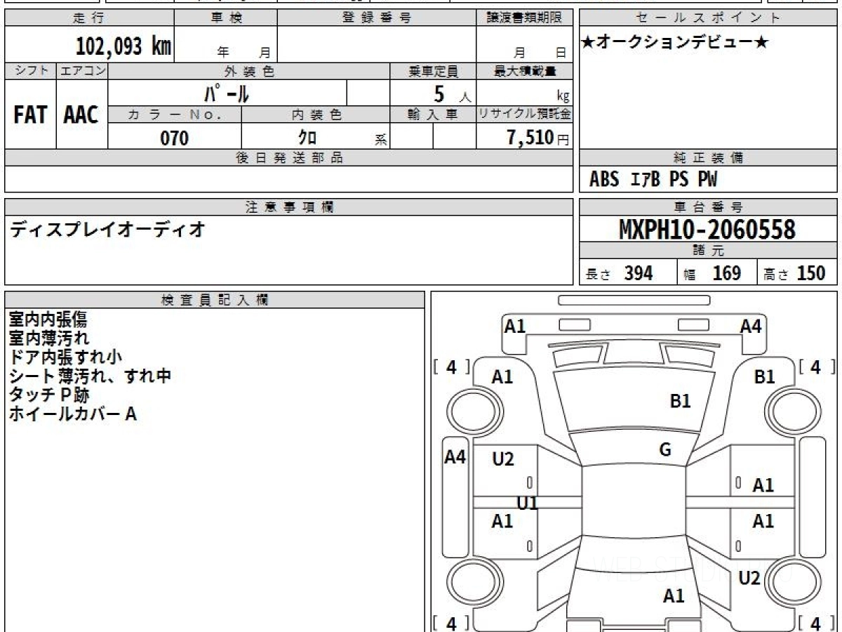 Оценка аукциона: 4, что гарантирует хорошее техническое и косметическое состояние кузова и салона.