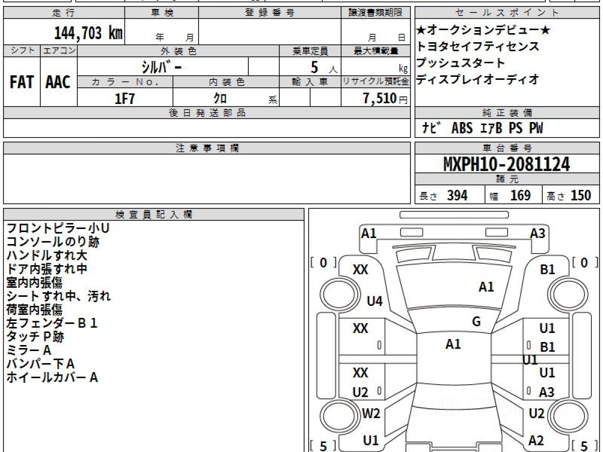 Номер кузова: MXPH10.