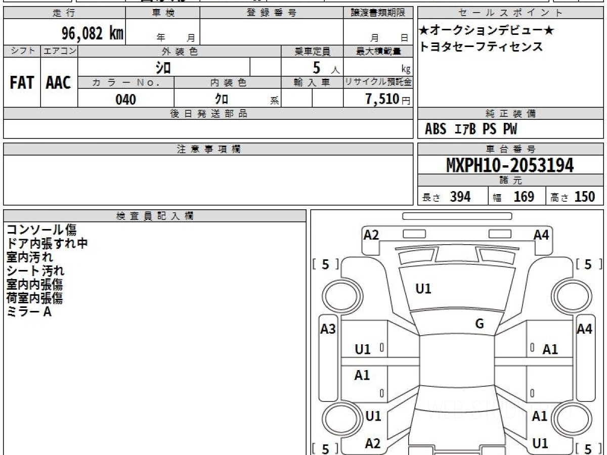 Номер кузова: MXPH10.