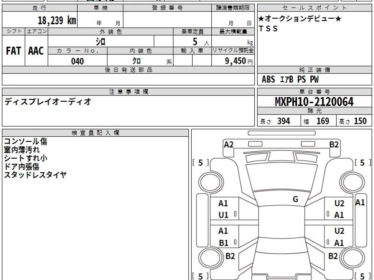 Оценка аукциона: 4, что гарантирует хорошее техническое и косметическое состояние кузова и салона.