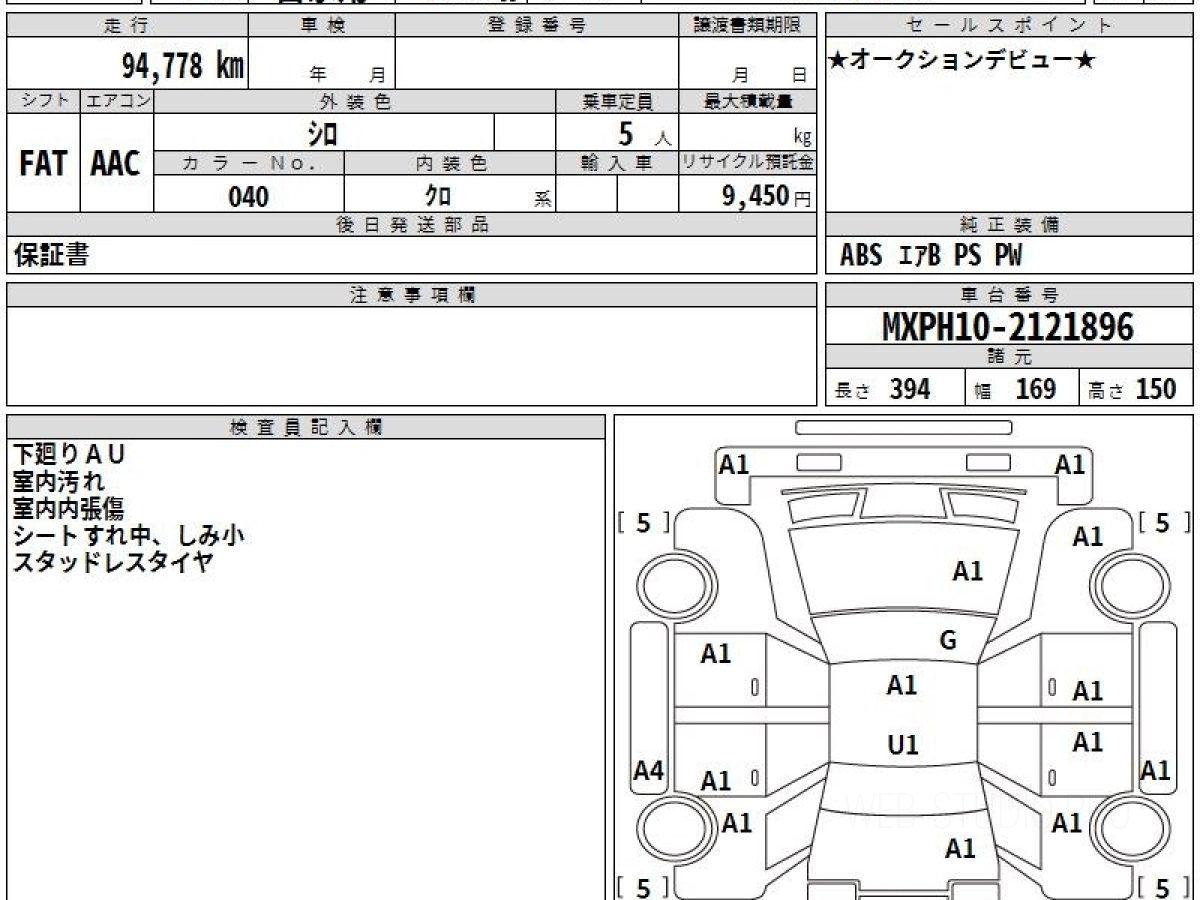 Оценка аукциона: 4, что гарантирует хорошее техническое и косметическое состояние кузова и салона.