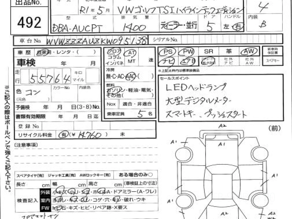Купить VOLKSWAGEN GOLF 2019 года выпуска можно под заказ с аукционов Японии во Владивостоке с доставкой в Москву или любой другой город России.