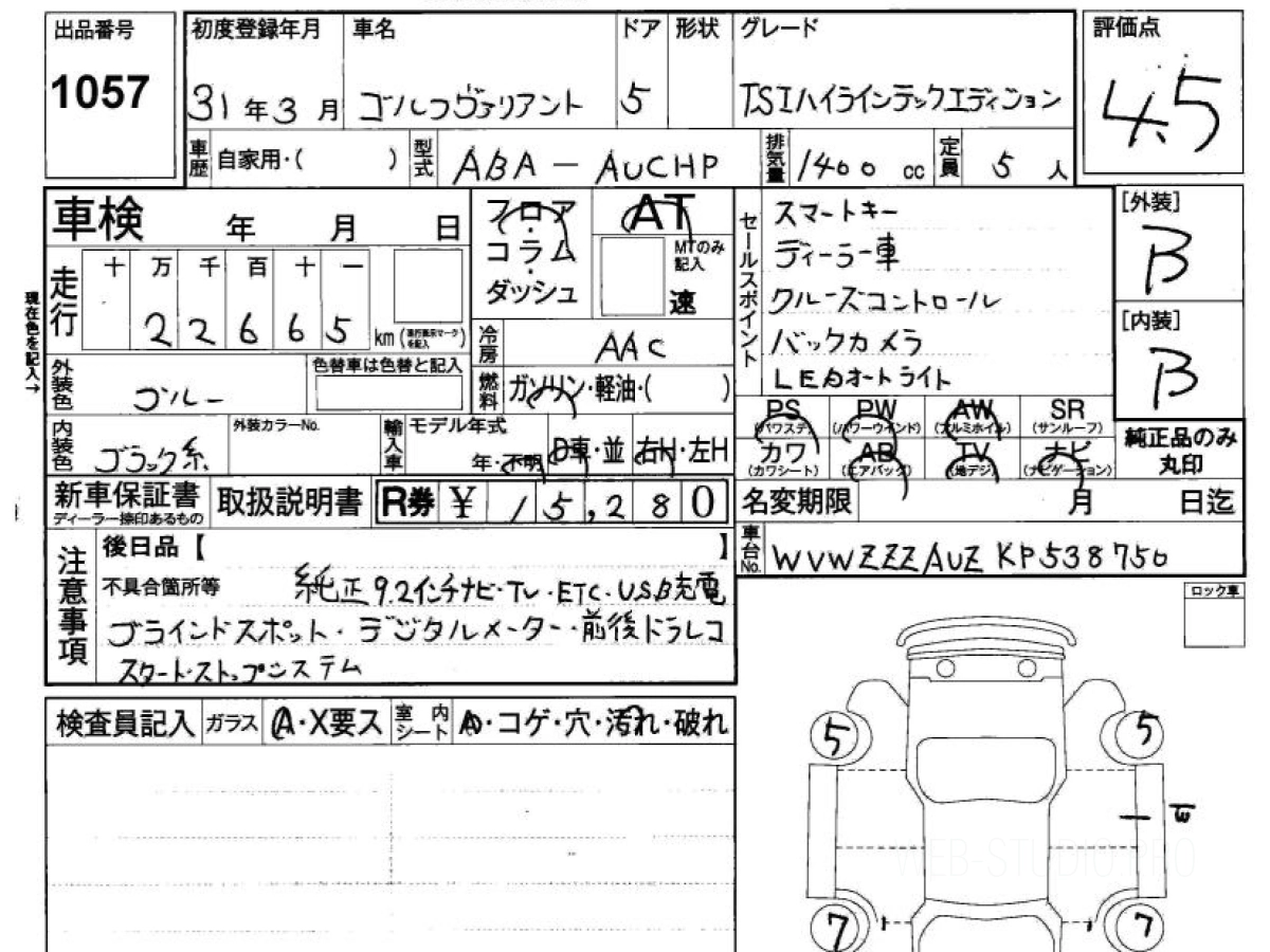 Купить VOLKSWAGEN GOLF VARIANT 2019 года выпуска можно под заказ с аукционов Японии во Владивостоке с доставкой в Москву или любой другой город России.