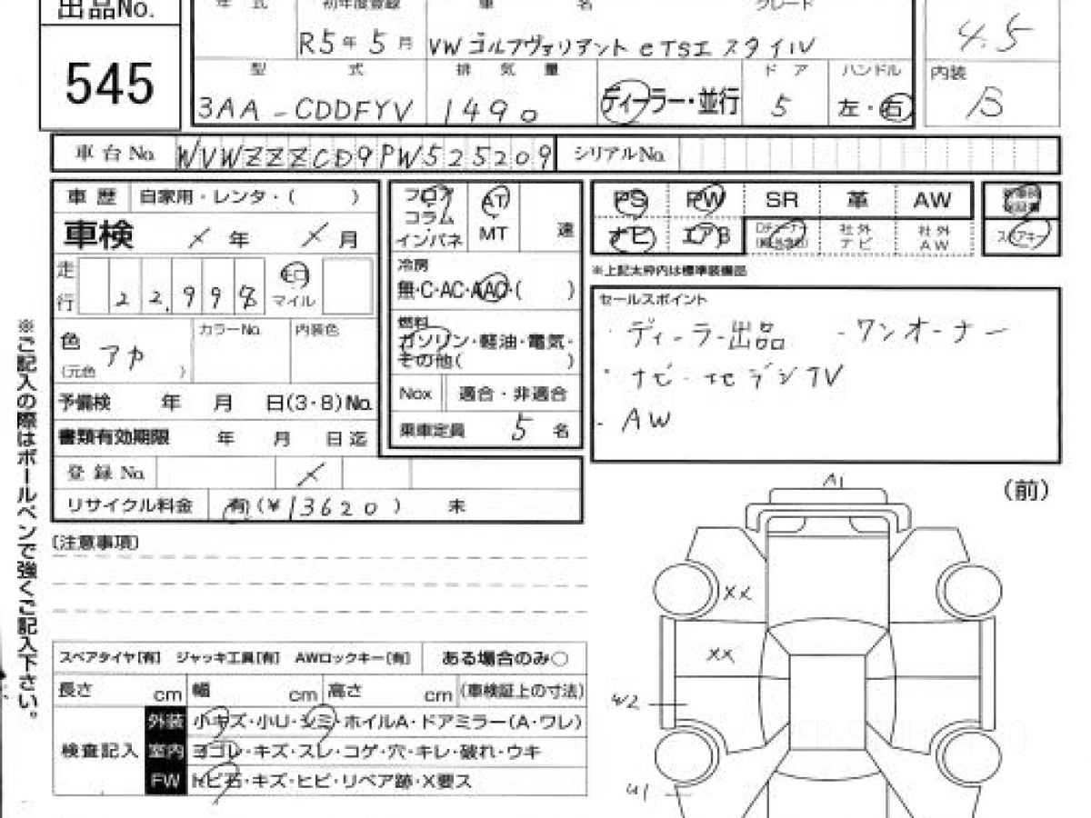 Купить VOLKSWAGEN GOLF VARIANT 2023 года выпуска можно под заказ с аукционов Японии во Владивостоке с доставкой в Москву или любой другой город России.